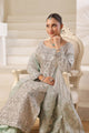 A statement in refined beauty, this silver zari net long shirt is paired with a softly contrasting silver and pista zari net dupatta and elegant pista banarsi izhaar, creating a harmonious blend of shimmer and heritage craftsmanship.